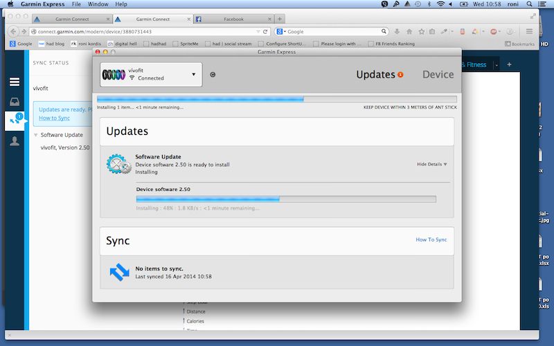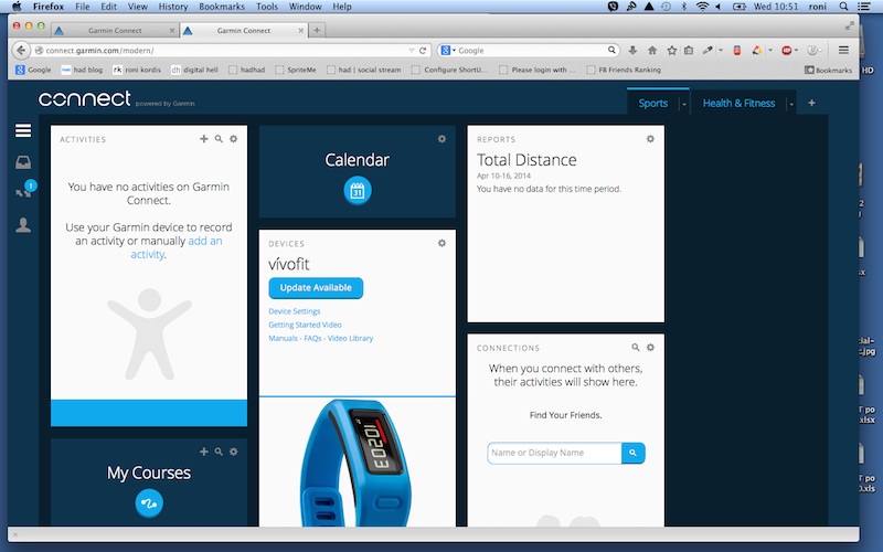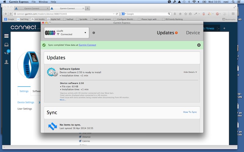 Za uporabo in sinhronizacijo Garmin vivofit merilca je potreben bluetooth – in tudi pred prvo uporabo je potrebno sinhronizirati napravico s pomočjo aplikacije (Garmin Connect), ki je na voljo na spletnem naslovu http://garminconnect.com/vivofit/, kje se registrirati in posodobite svojo napravo na zadnjo programsko opremo. Proces vam vzame par minut in potem lahko začnete uporabljati svojo “novo priležnico”, ki vam bo sporočala kako aktivni ste v resnici skozi dan. Rezultati so definitivno zanimivi in zame celo presenetljivi.
