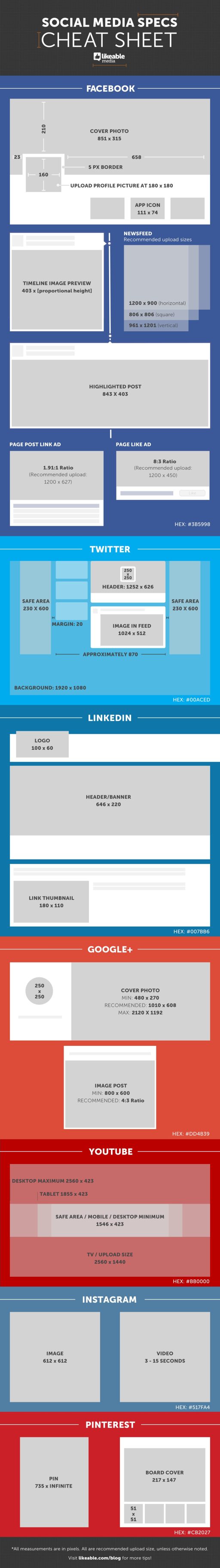 Saj veste o čem govorim, kajne? Tisti majhni problemi, s katerimi se srečujemo in nas delajo nejevoljne, ko ne vemo točno katere so prave dimenzije za fotke, ki jih objavljamo in vedno znova v Google vpisujemo iskalne nize, pod katerimi najdemo te informacije. No, sedaj je temu konec, saj obstaja The Ultimate Cheat Sheet for Social Media Dimensions, kjer so zapisane vse dimenzije, ki jih morate vedeti in ki vam pridejo prav na različnih družbenih omrežjih.