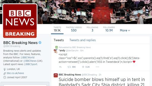 Ja, če BBCBreaking pošlje tvit svojim 10 milijonom sledilcev in precej od njih jih uporablja tudi Tweetdeck, ki sam retvita to kodo, potem se je zgodilo nekaj, kar se sicer ne bi smelo. Tweetdeck je začasno onemogočil njihovo aplikacijo. Mene pa zanima, kdo stoji za tem in kakšno je dejansko ozadje?!