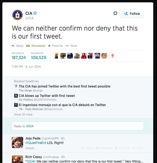 07/06/2014CIA in Twitter – njihov prvi tvit je #topshit O tem kaj vsebuje dober tvit in kako ga napisati sem že pisal. Kljub temu, da je teorija…