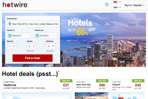 Hotwire je spletno mesto, ki ga zelo rad uporabljam, ko mi je vseeno v katerem hotelu bi rad spal, vendar vem, da si želimo določeno število zvezdic in predvsem v katerem delu mesta.