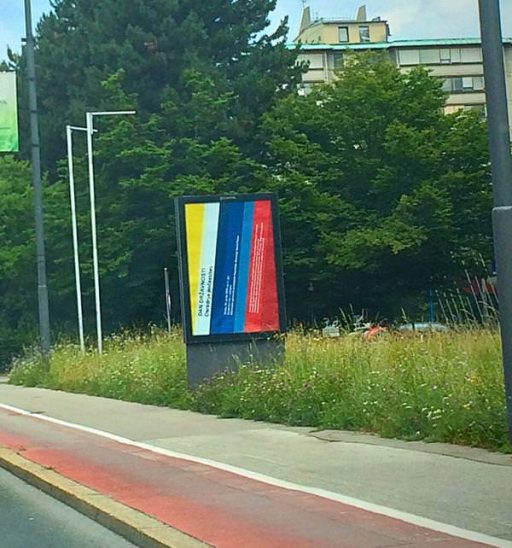 Kaj me je tako presnetilo na tem plakatu? Barve! Namreč, do sedaj sem bil prepričan, da imamo tri barve, ki simbolizirajo Slovenijo v naši zastavi – rdeča, bela, modra. Očitno sem se motil in danes z začudenjem ugotavljam, da imamo tudi rumeno barvo, ki predstavlja Slovenijo! Da o odtenkih modre in rdeče barve ne izgubljam besed.