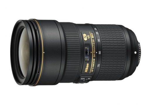 Čeprav je trenutni objektiv z goriščno razdaljo 24-70 mm (predstavljen s fotoaparatom Nikon D3 leta 2007) še vedno zelo priljubljen, prenovljena različica zagotavlja povsem novo raven zmogljivosti. Nova optična zasnova tega objektiva Nikkor prvič vključuje asferični element iz ED-stekla, ki je bil razvit za odpravljanje kromatskih aberacij, saj zmanjšuje upadanje količine zabeležene svetlobe proti robovom slikovnih tipal in omogoča brezkompromisno ločljivost tudi ob robovih slike. Popolnoma novi sistem VR zmanjšuje posledice tresenja fotoaparata in omogoča fotografiranje s časi zaklopa, za do štiri stopnje daljšimi od priporočljivih. Izboljšana je tudi funkcija samodejnega ostrenja, saj je vgrajen Nikonov ekskluzivni tihi pogon Silent Wave Motor (SWM), ki je tokrat 1,5-krat hitrejši od pogona v predhodniku.Elektromagnetni mehanizem zaslonkeomogoča neprekinjene in natančnejše osvetlitve pri hitrih rafalnih posnetkih, kar zmanjšuje tveganje nenamernih poškodb in okvar, povezanih z mehanizmi mehanskih vzvodov za uravnavanje zaslonke.