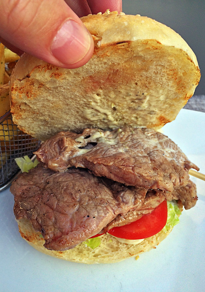 Prosil sem, če lahko dobim medium rare pečen roastbeef, če že ne bom dobil burgerja, kot sem si ga zaželel. Ko sem dobil na mizo XL burger in krompirček, je vse skupaj izgledalo precej ubogo. Trije kosi roastbeefa, ki niso bili pečeno medium rare, saj sem jih mrcvaril, da bi zagledal vsaj malce rdečega mesa. V bistvu so bili medium well, ampak ne bom težil, saj se zavedam, da je težko pripraviti centimeter debel roastbeef po željah gosta (#not)!