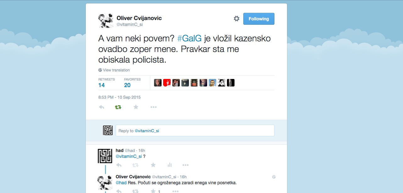 A vam neki povem? #GalG je vložil kazensko ovadbo zoper mene. Pravkar sta me obiskala policista.
