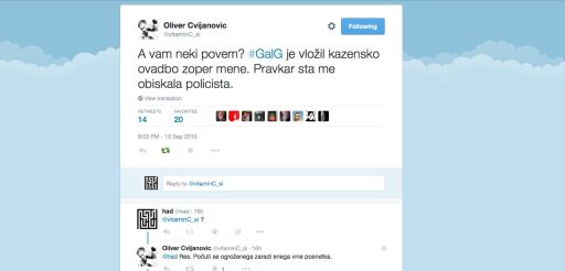 A vam neki povem? #GalG je vložil kazensko ovadbo zoper mene. Pravkar sta me obiskala policista.