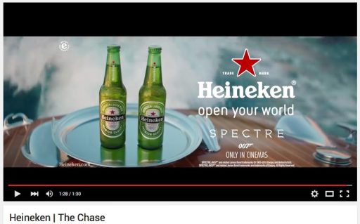 Heineken je tako edini, ki bo imel v oglasu Daniela Craiga in bo dal na trg posebno edicijo steklenic Heinekena in Heineken Lighta, ki bodo “brendirane” z logotipom Spectre! Prav tako pa Heineken pripravlja akcijo – “the world’s first-ever selfie from space / Spyfie”.