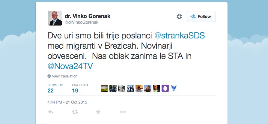 22/10/2015Ko gredo poslanci SDS med begunce in o tem obvestijo medije Trenutno situacijo z begunci v Sloveniji izkoristi vsak po svoje. Nekateri pomagajo, drugi pizdijo, tretji jo izkoriščajo za…