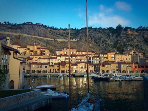 Prvi vtis, ko zagledaš to gmoto betona pred seboj je čuden. Še posebej zato, ker je zgrajen tako, da ima vsaka nepremičnina (in teh je res neskončno) pogled na morje! V samem naselju ni vozil in do Portopiccola vodi samo ena cesta, kar mi je po eni strani fascinantno, vendar po drugi strani pa ima Portopiccolo zelo veliko pristanišče, v katerega lahko svoje prestižno drage čolničke parkirajo lastniki nepremičnin, ali pa samo obiskovalci.