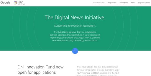 Podjetje Google je aprila letos predstavilo pobudo Digitalne novice, ki predstavlja sodelovanje z enajstimi evropskimi novinarskimi organizacijami z namenom podpore kakovostnega novinarstva s pomočjo tehnologije in inovacij. Pobuda je odprta za vse, ki v Evropi delujejo na področju digitalnega novinarstva, naj bodo to velika ali majhna podjetja, uveljavljena ali nova imena na tem področju. Od prvotne predstavitve se je k sodelovanju prijavilo več kot 120 organizacij. Ker si v podjetju Google želijo, da bi k sodelovanju pristopilo še več ljudi, z veseljem najavljajo, da z današnjim dnem odpirajo Sklad za inovacije DNI (ang. DNI Innovation Fund) za nove prijave.