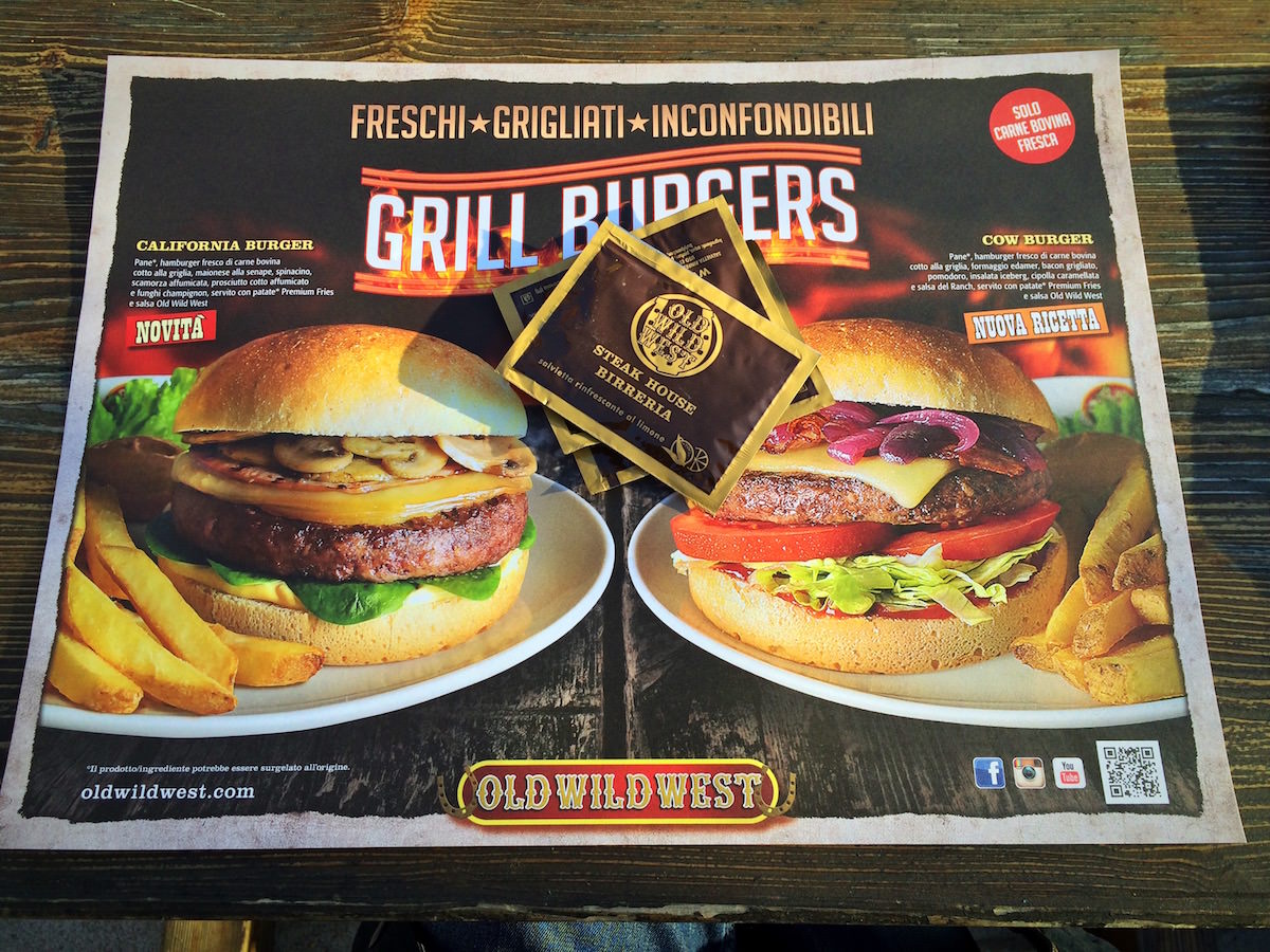 Old Wild West / enkrat je bilo dovolj. Verjamem pa, glede na število gostov v restavraciji, da Italijani naravnost obožujejo njihove burgerje. Mene ne vidijo nikoli več!