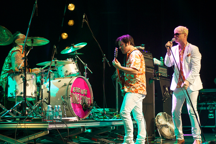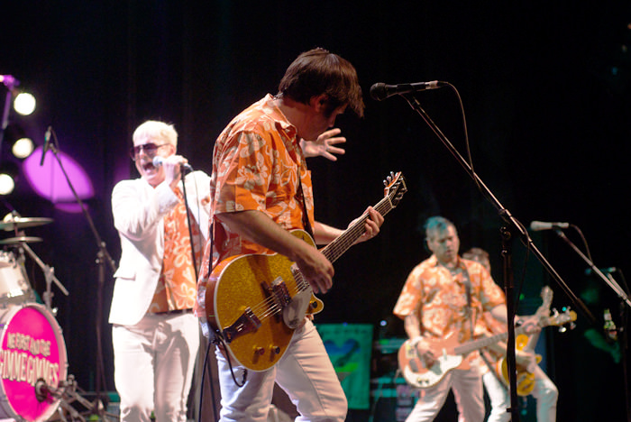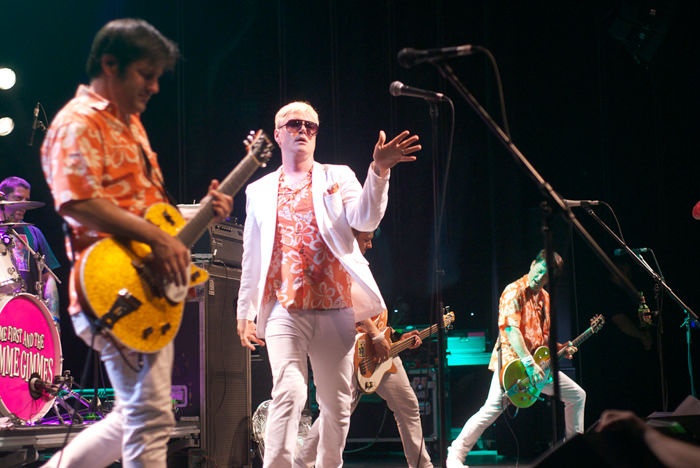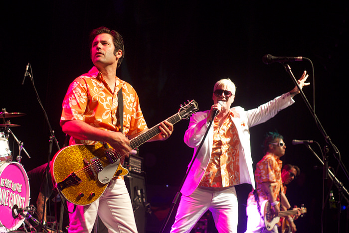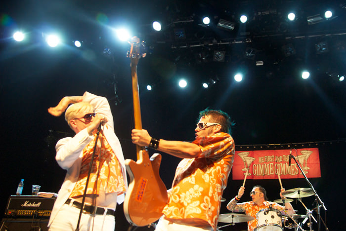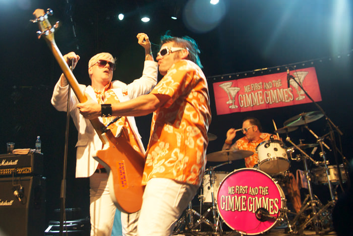 For the uninitiated, Me First and the Gimme Gimmes consist of Lagwagon frontman Joey Cape on the guitar, Shiflett brother (and Foo Fighter) Chris Shiflett on the other guitar, Lagwagon drummer and Fat Wreck utility superhero Dave Raun on the skins, and are rounded out by Fat Wreck-head-honcho/NOFX main-dude Fat Mike, and incomparable crooner Spike Slawson. Together, Me First and the Gimme Gimmes—an outfit that has always operated more like a beer-hall Pussycat Dolls than a regular mortal band—contain so much hot air, so much pomp, so much attitude, that it’s a wonder that these guys can still manage to pull their five individual tour buses into the same parking lot, put their differences aside and belt out the ballads without clawing each other’s eyes out. But they do, for the love of the fans, the music, and of course, the applause.