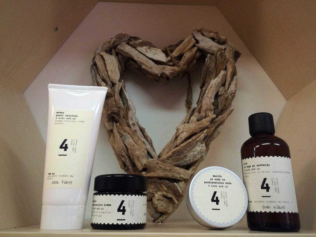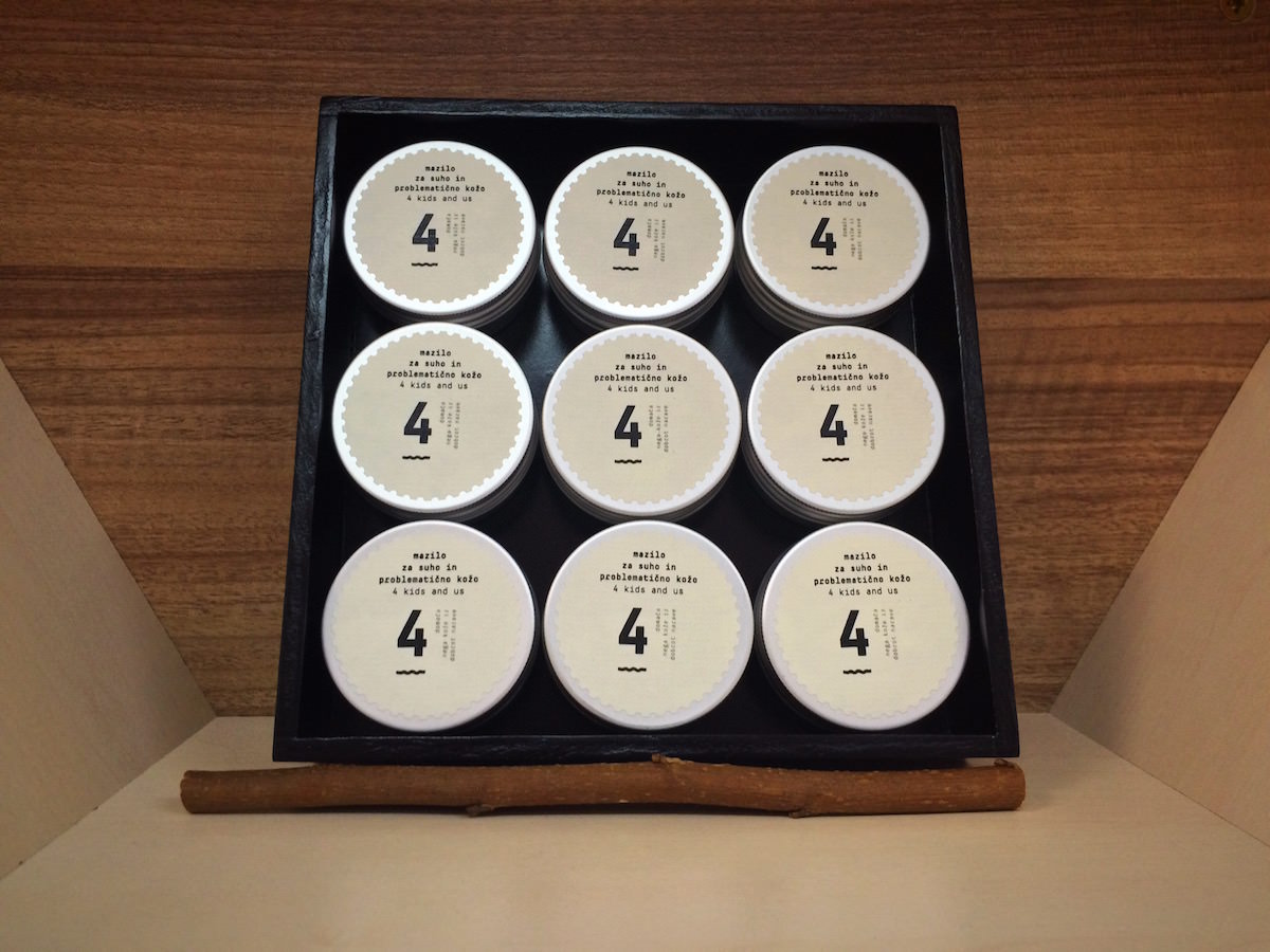 4 kids and us je blagovna znamka naravne kozmetike iz Radeč. Kreme in vsi ostali izdelki so brez umetnih emulgatorjev in sintetičnih konzervansov (brez parabenov, sintetičnih parfumov, aldehidov, formaldehidov in ftalatov). Že samo ime blagovne znamke 4 kids and us je zanimivo / lastnika blagovne znamke imata štiri otroke in njuni izdelki niso zgolj in samo namenjeni otrokom.