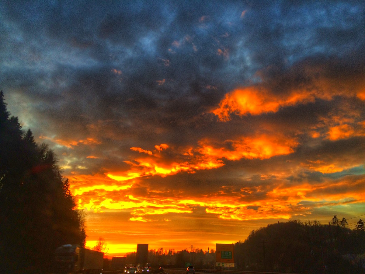 Vožnja od Trojan proti Ljubljani je bila včeraj magična. Sončni zahod, ki so ga bila polna družbena omrežja, predvsem pa barve neba, ki jih nismo navajeni. No, malce pri vsem tem pomaga tudi saturacija in potem je nebo takšno, kot bi si ga izmislil odličen slikar s precej bujno domišljijo.