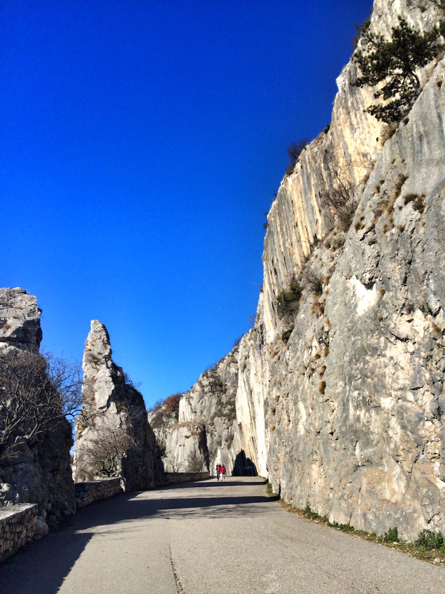 Proti koncu poti prideš do sten pred naseljem Borgo San Nazario pri Proseku, ki so raj za plezalce. Ob sončnem vremenu jih je kot martinčkov in prav prijetno popestrijo celoten sprehod. Pot se po asfaltu rahlo dvigne in tako prideš do velikega parkirišča, kjer se lahko obrneš, ali pa greš skozi gozd do Marijinega svetišča na Vejni (Monte Grisa) – ta del sem tokrat preskočil, ker sem se raje martinčkal na soncu in opazoval plezalce v stenah.