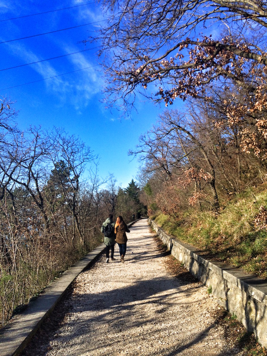 Ponavadi izberem sprehod od Trsta do gradu Miramare, tokrat pa sem se odločil, da se sprehodim po razgledni pešpoti od od obeliska na Openskem vrhu (Opčine) do Proseka. Ta pot se imenuje Napoleonova cesta / strada Napoleonica in je primerno označena in tudi zelo obiskana. Uradno ime te pešpoti je Vincentinska cesta (Strada Vicentina) – po projektantu inženirju Vincentiju. Celoten sprehod po pešpoti ponuja čudovit pogled na Trst in celoten tržaški zaliv!