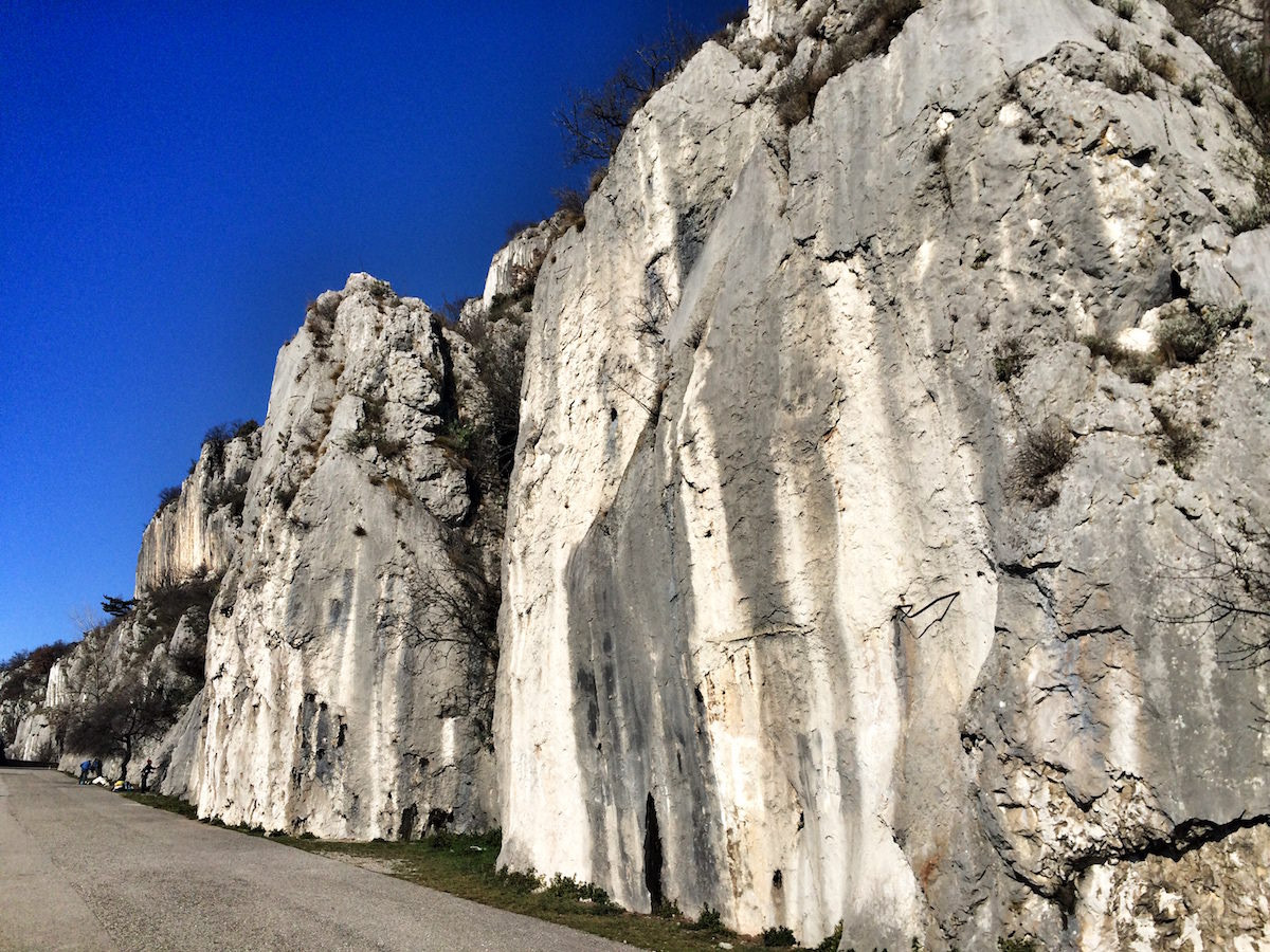 Proti koncu poti prideš do sten pred naseljem Borgo San Nazario pri Proseku, ki so raj za plezalce. Ob sončnem vremenu jih je kot martinčkov in prav prijetno popestrijo celoten sprehod. Pot se po asfaltu rahlo dvigne in tako prideš do velikega parkirišča, kjer se lahko obrneš, ali pa greš skozi gozd do Marijinega svetišča na Vejni (Monte Grisa) – ta del sem tokrat preskočil, ker sem se raje martinčkal na soncu in opazoval plezalce v stenah.