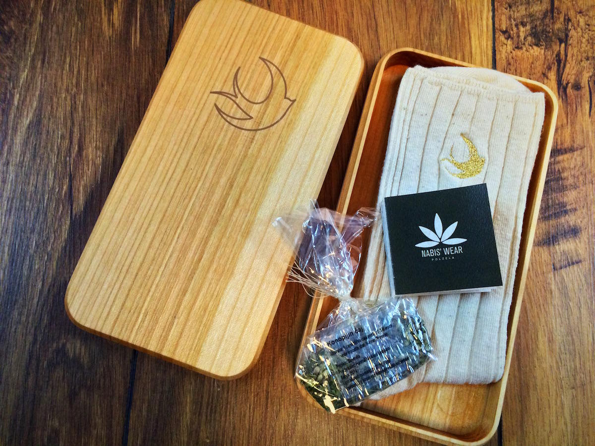 Posebnost tega izdelka je, da ga lahko kupite v lični leseni darilni embalaži, ki je idealna za poslovna darila, prav tako pa je emblem lastovke tkan iz zlate niti. Vsaka škatla ima svojo serijsko številko. Priložena so tudi konopljina semena iz katerih lahko pripravite čaj.