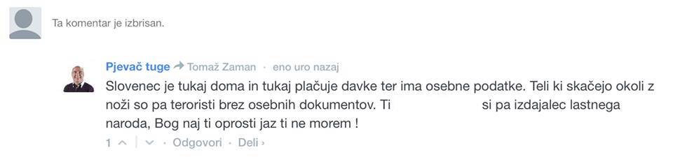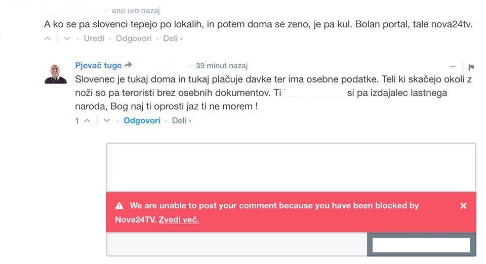 Tak je tudi primer spodnjega komentarja, ki se pa administratorju portala ni zdel primeren in je najprej uporabniku onemogočil komentiranje, potem pa še pobrisal njegov komentar.