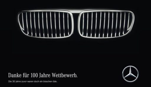 BMW praznuje 100 let obstoja in posledično se spodobi, da konkurenčni koncerni čestitajo podjetju ob tem dogodku. Kako čestitajo, pa je nekaj povsem drugega. Kreativna ideja, ki so jo dobili in realizirali pri Mercedes-Benzu, me je navdušila, saj je dokaz, da se da s preprostimi, vendar zelo dobro zastavljenimi “kopiji” narediti velik vtis. Predvsem pa je dejstvo, da se sedaj o tej čestitki govori povsod po internetih.