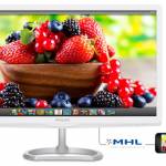 Dodatno tehnologija MHL poskrbi, da se na monitorjev zaslon preslika slika z mobilnih naprav uporabnikov, preko namenskega kabla MHL pa monitor tudi hitro polni povezane naprave. Za manjšo gnečo s kabli poskrbita v monitor vgrajena zvočnika.