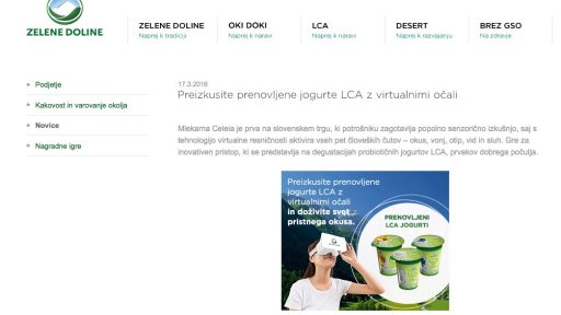 Mlekarna Celeia je prva na slovenskem trgu, ki potrošniku zagotavlja popolno senzorično izkušnjo, saj s tehnologijo virtualne resničnosti aktivira vseh pet človeških čutov – okus, vonj, otip, vid in sluh. Gre za inovativen pristop, ki se predstavlja na degustacijah probiotičnih jogurtov LCA, prvakov dobrega počutja.