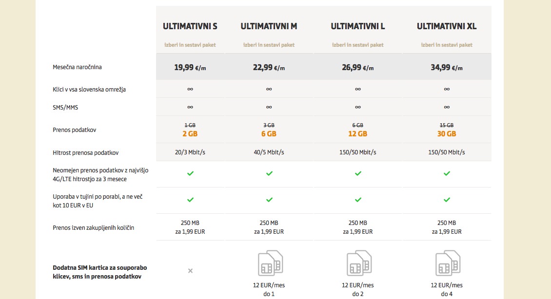 - pri Simobilu sem vzel za primerjavo paket Ultimativni M