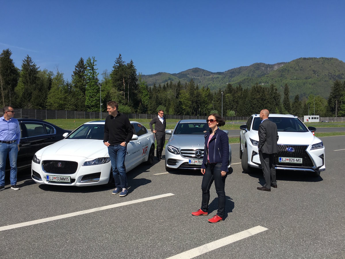 Prejšnji četrtek smo se žiranti zbrali pred hotelom Mons v Ljubljani in se odpeljali s prej omenjenimi vozili proti Centru varne vožnje na Vranskem – preko Kamnika. Glede na to, da je nas žirantov bilo devet in pet vozil, smo se na poti ustavljali in presedali med vozili. Predstavniki podjetij so nam na hitro razložili prednosti in opremo njihovih vozil, medtem ko smo mi uživali v vožnji.