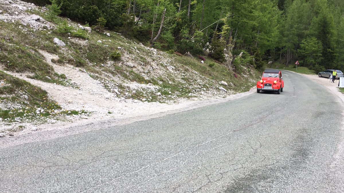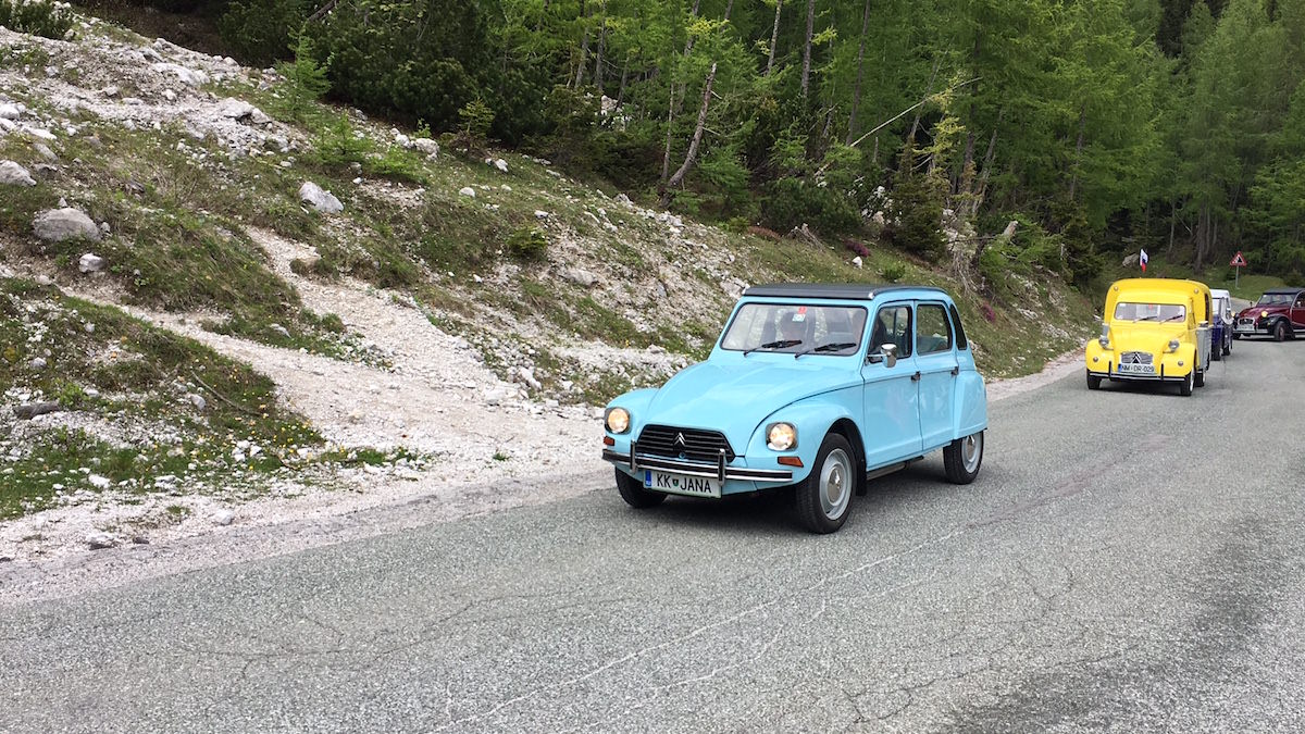 Diane so bile parkirane pri Erjavčevi koči in ko so speljevali v hrib, se je pokazalo pomanjkanje moči – 21 konjev pač ni nekaj, kar bi močno pomagalo pri vožnji v klanec. O tem, kako so se spuščali preko Vršiča proti Bovcu, pa raje ne bom razmišljal.