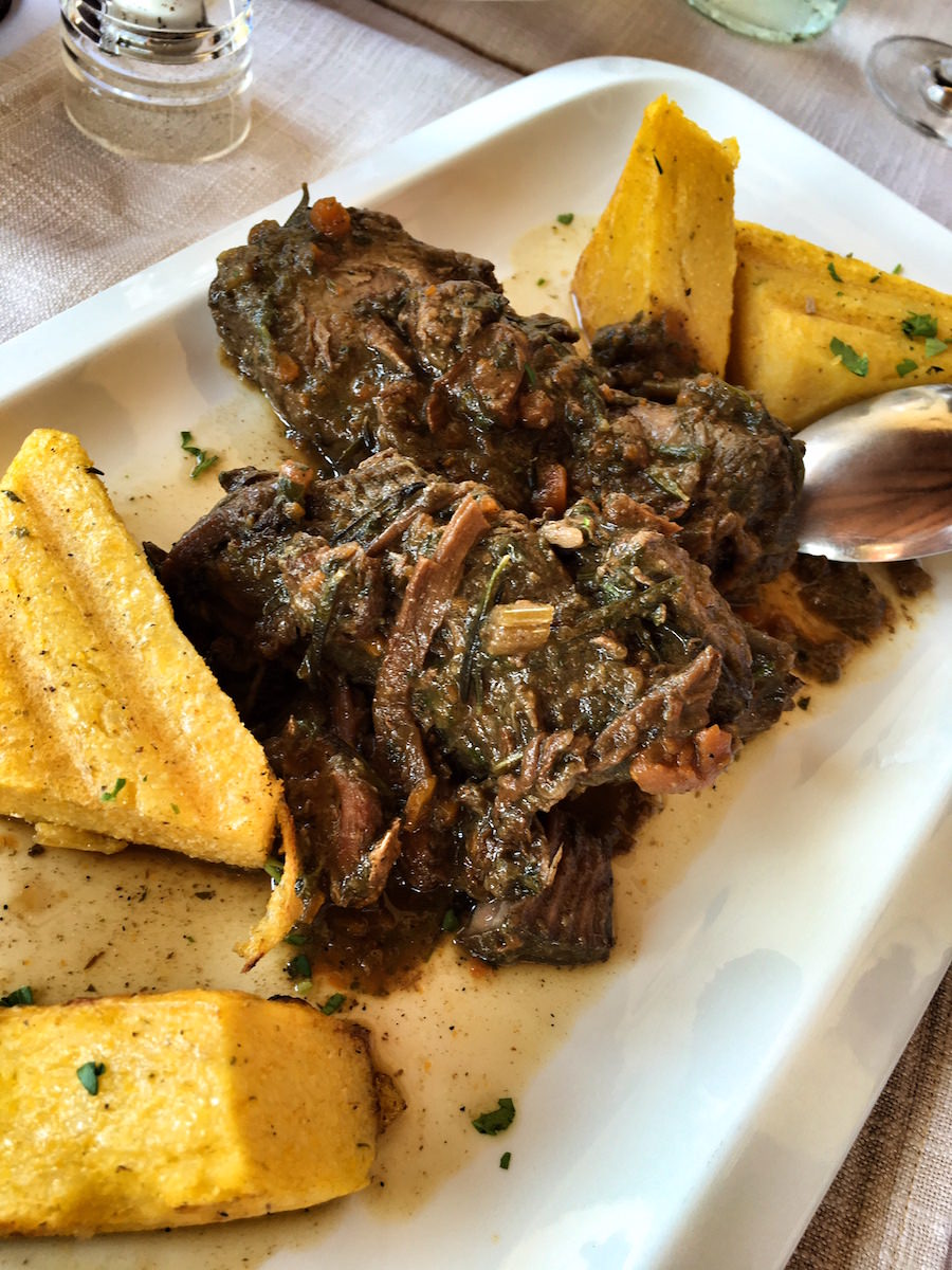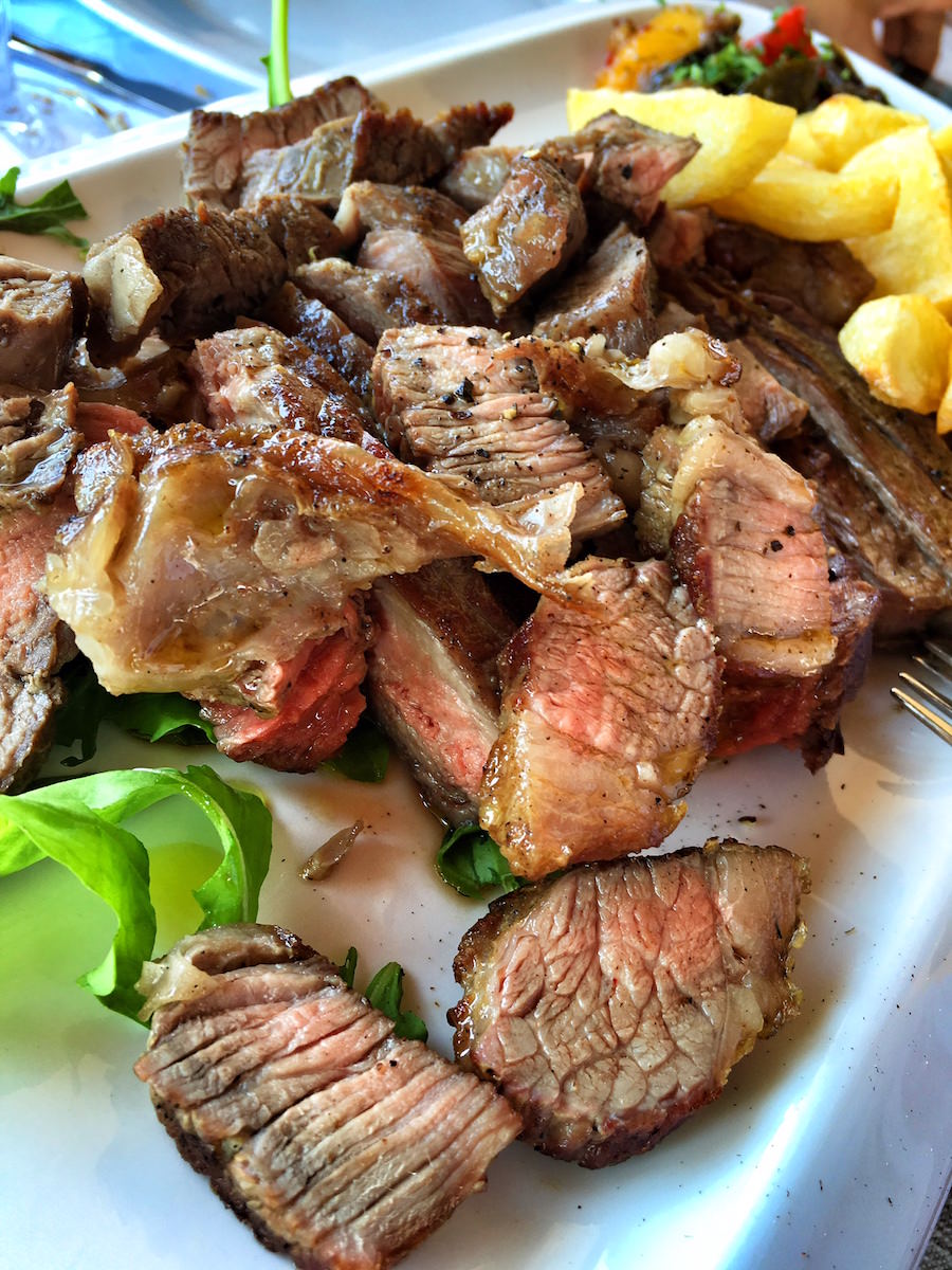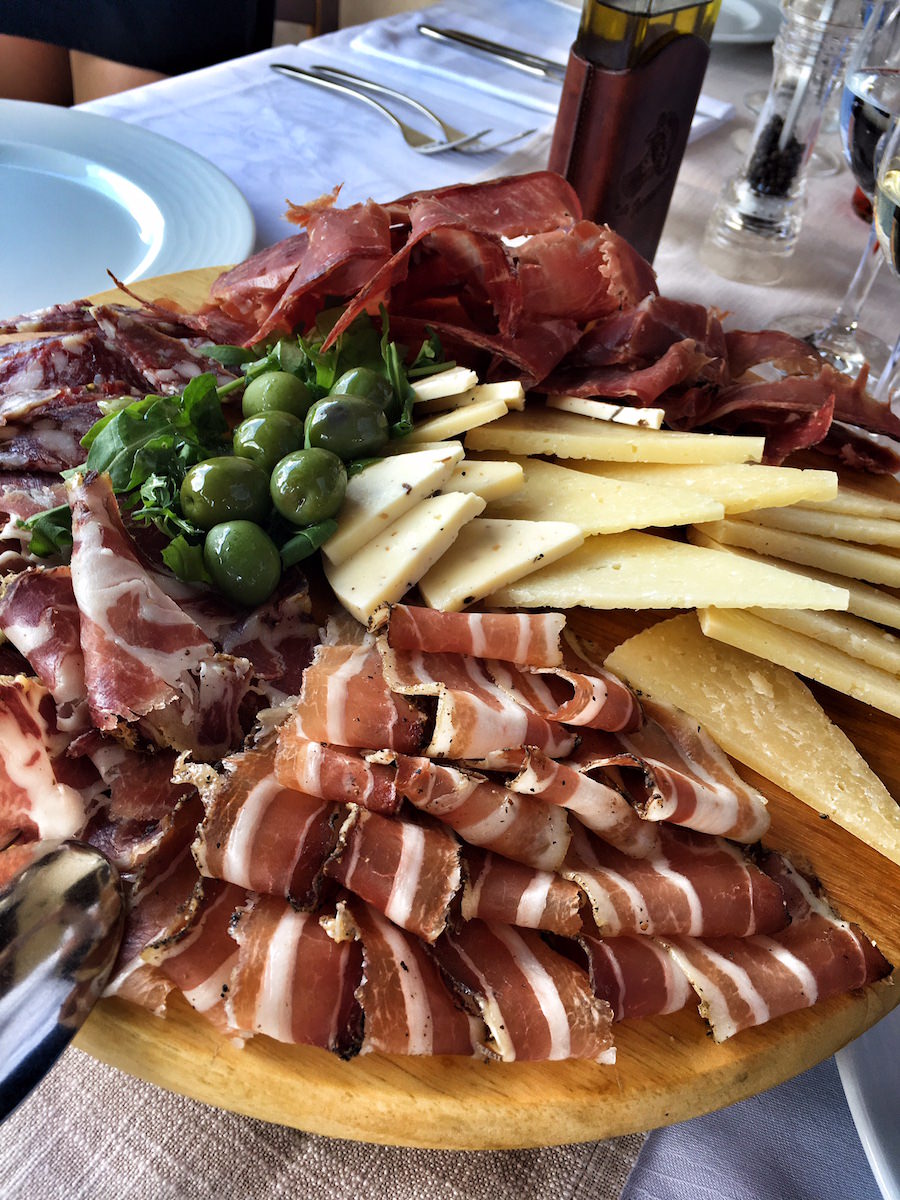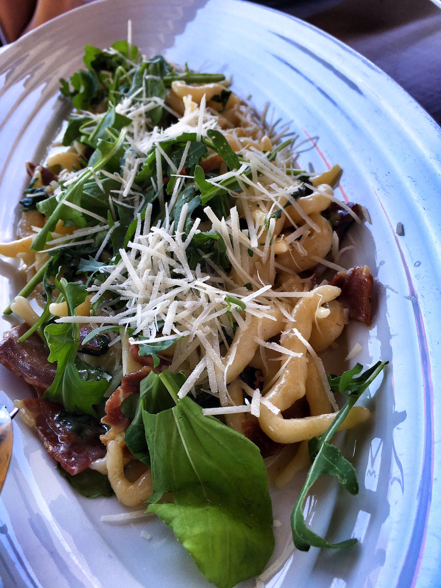 Hrana, ki smo jo dobili v restavraciji Alla Beccaccia je bazirala predvsem na mesu. Domač pršut, domača salama, sir s tartufi, sveže pečen kruh. Domače pripravljeni pljukanci s pršutom in doma narejeni njoki z boškarinom. Potem pa še “pod peko” spečena divja svinja s svežim krompirjem in taljata iz florentinca.