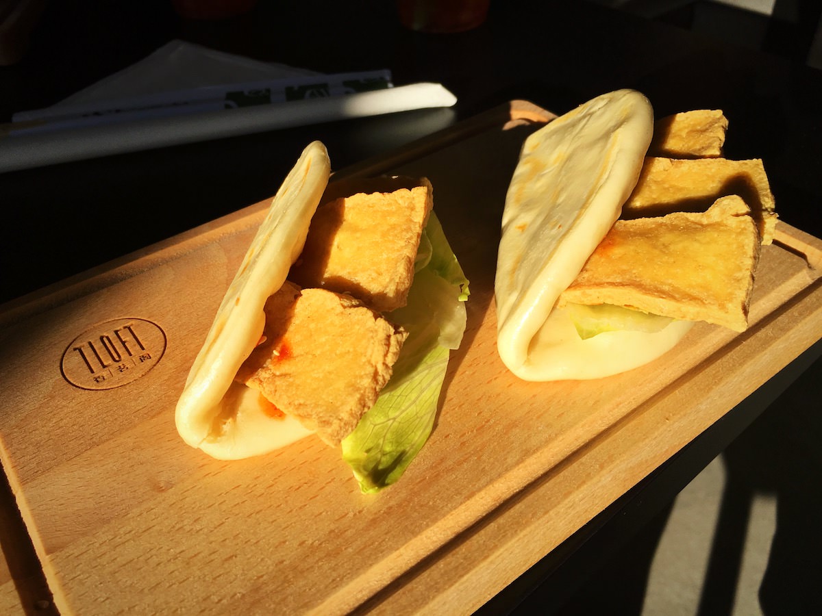 Tloft je pozicioniran nasproti Tabay Brothers in je povsem na novo, minimalistično, urejena restavracija, kavana in čajnica. Na meniju je precej azijskih stvari, vendar na žalost še nimajo sušija (veganskega), ki sem si ga zaželel. Ker je bila moja izbira brez sušija precej majhna (jo skoraj ni bilo), sem se odločil, da preizkusim “steam buns” s tofu sirom (cena 4,90 eurov, če se ne motim) in zraven sem naročil Bubble tea – novost v Sloveniji.
