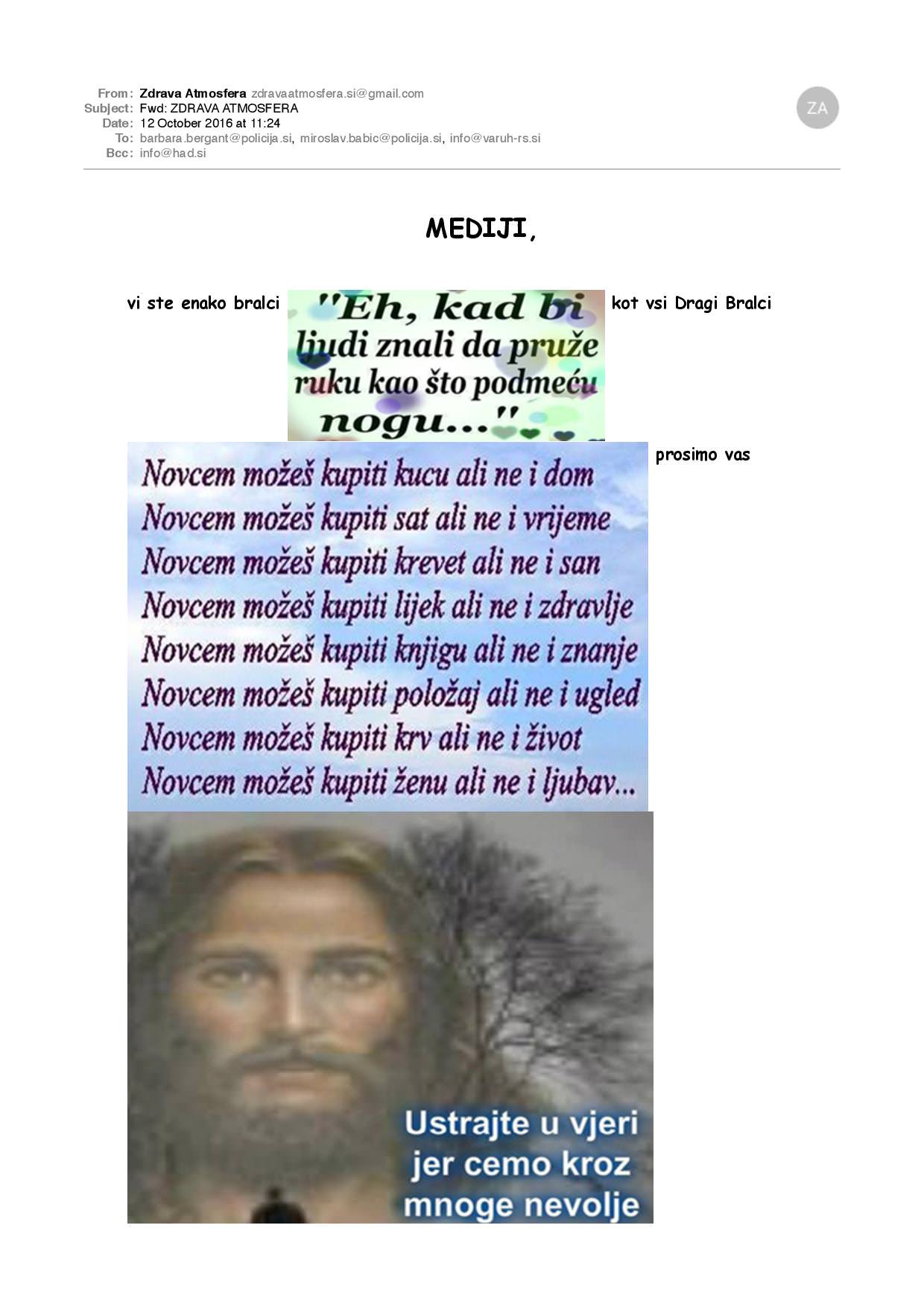 Zdrava Atmosfera se ne vda. Nov dan, novo elektronsko sporočilo, ki je bolečina za moje oči – Comic Sans font, vse besede ze veliko črko, predvsem pa različne barve, ki jih uporabljajo za širjenje svoje besede med novinarje. Zadnje čase dodajajo v komunikacijo tudi predstavnike policije in informacijsko pooblaščenko.