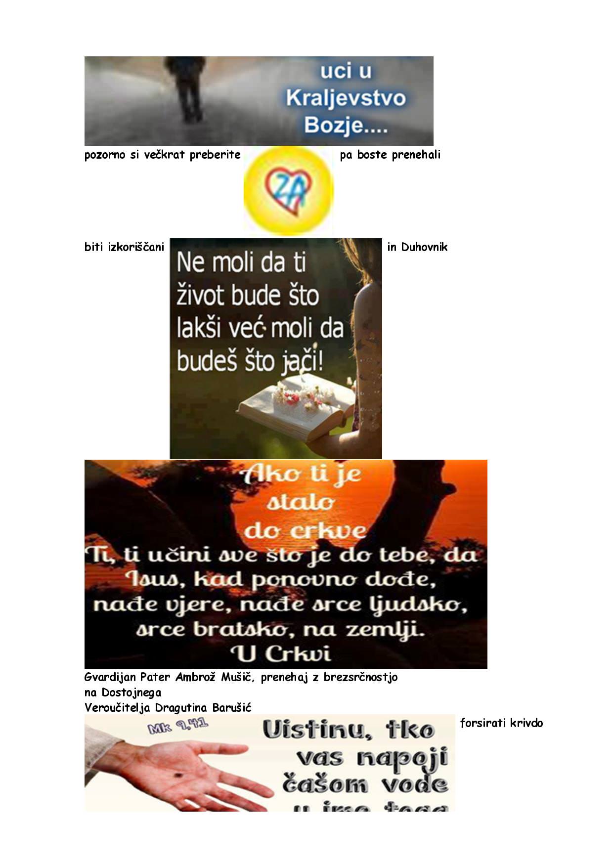 Zdaj končno vem in še predobro vem, da sem (smo) Bitje Dragega Boga Jezusa Kristusa in do tega spoznanja ne bi prišla brez Vodstva Našega Preljubega Nadučitelja. Sveto Rimokatoliško Cerkev ohranjamo, ker nas je prišlo ogromno s Hvaležnostjo in Zaupanjem, kar meni, še posebej Duši, Daruje Moč, da nebom nikoli več životarila v praznovanju povprečnih, temveč v malenkostih odkrivala Božje Prošnje.