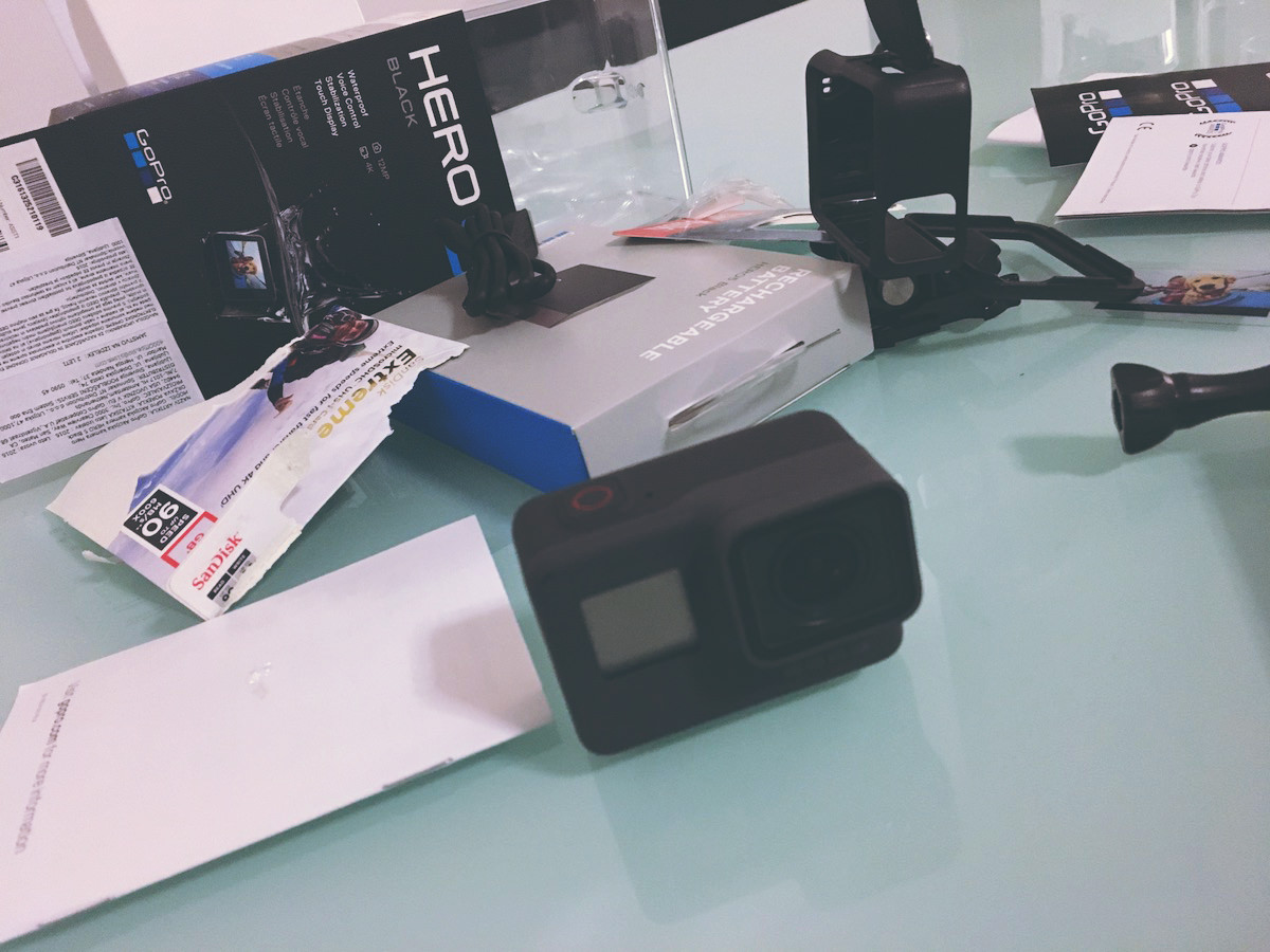 Na srečo je kolega Damjan pred par dnevi nabavil svojo Hero5 kamero in mi dal nasvet, kje jo dobim najugodneje. Cene kamer so praktično enake, vendar Foto Klik doda ob nakupu še torbico in “selfie stick”. Zraven sem vzel še 32GB kartico in dodatno baterijo – baterija pri Hero5 naj bi zdržala okoli 1 ure, kar pa mi je skoraj premalo.
