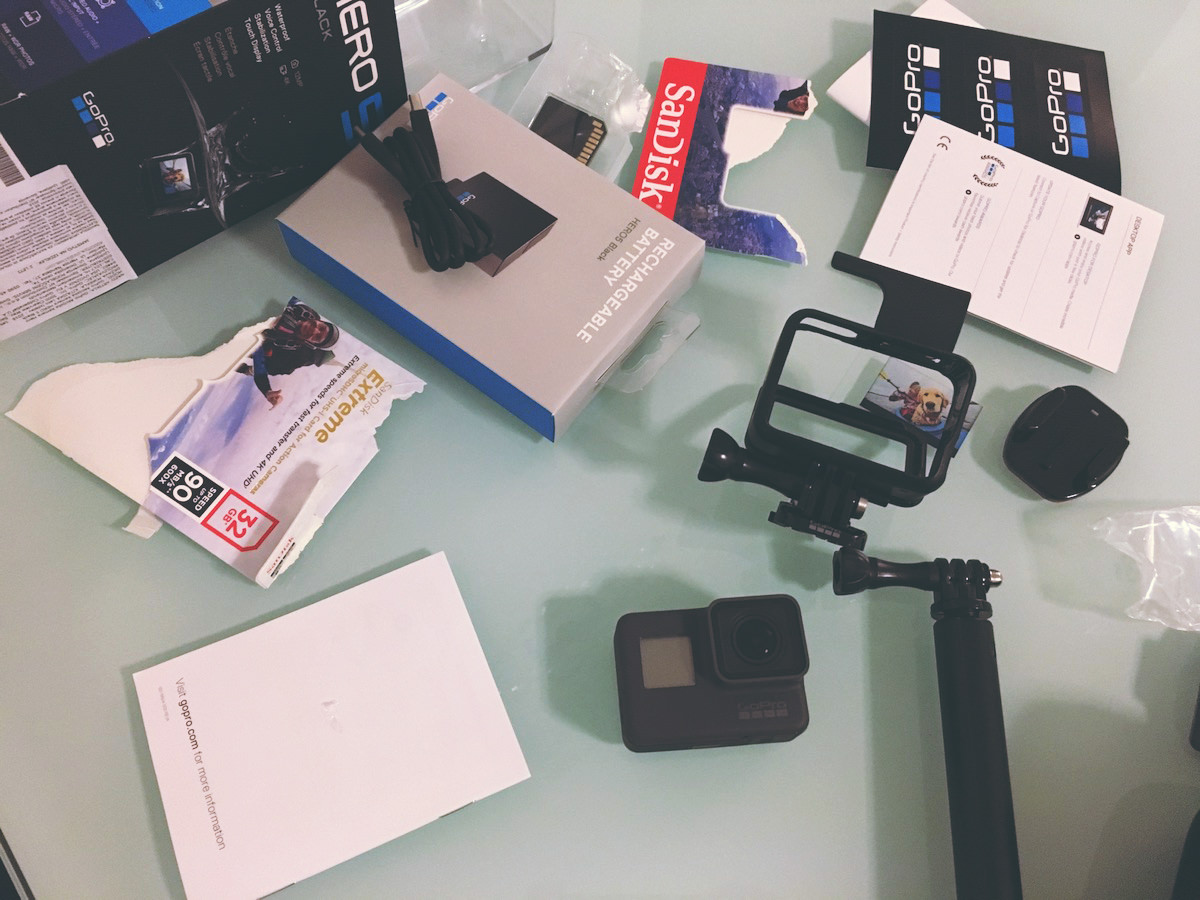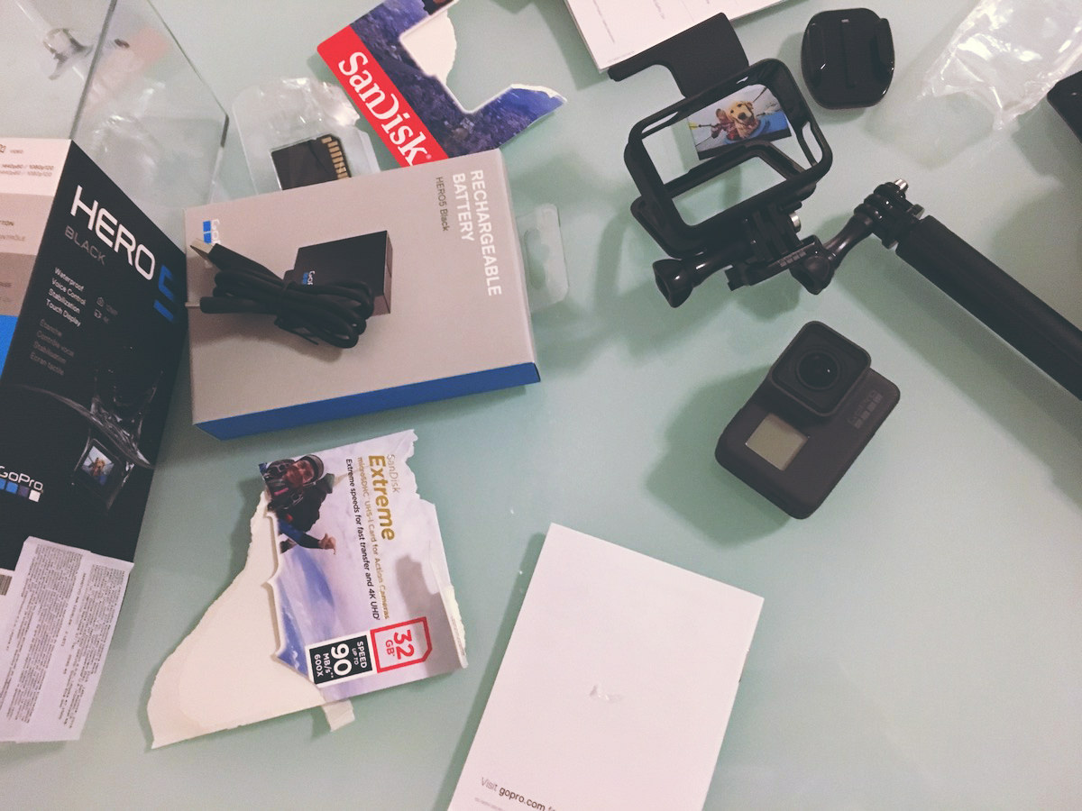 Na srečo je kolega Damjan pred par dnevi nabavil svojo Hero5 kamero in mi dal nasvet, kje jo dobim najugodneje. Cene kamer so praktično enake, vendar Foto Klik doda ob nakupu še torbico in “selfie stick”. Zraven sem vzel še 32GB kartico in dodatno baterijo – baterija pri Hero5 naj bi zdržala okoli 1 ure, kar pa mi je skoraj premalo.