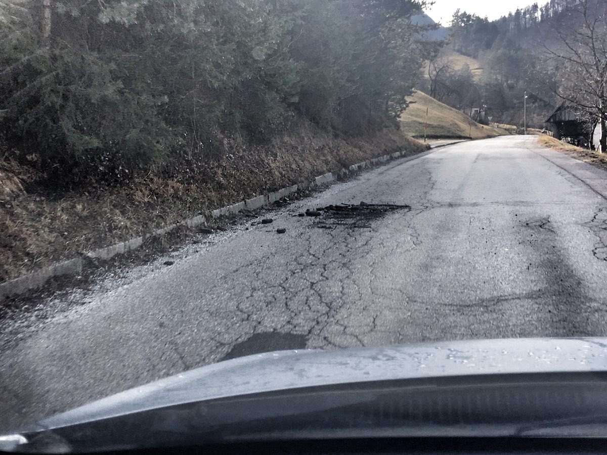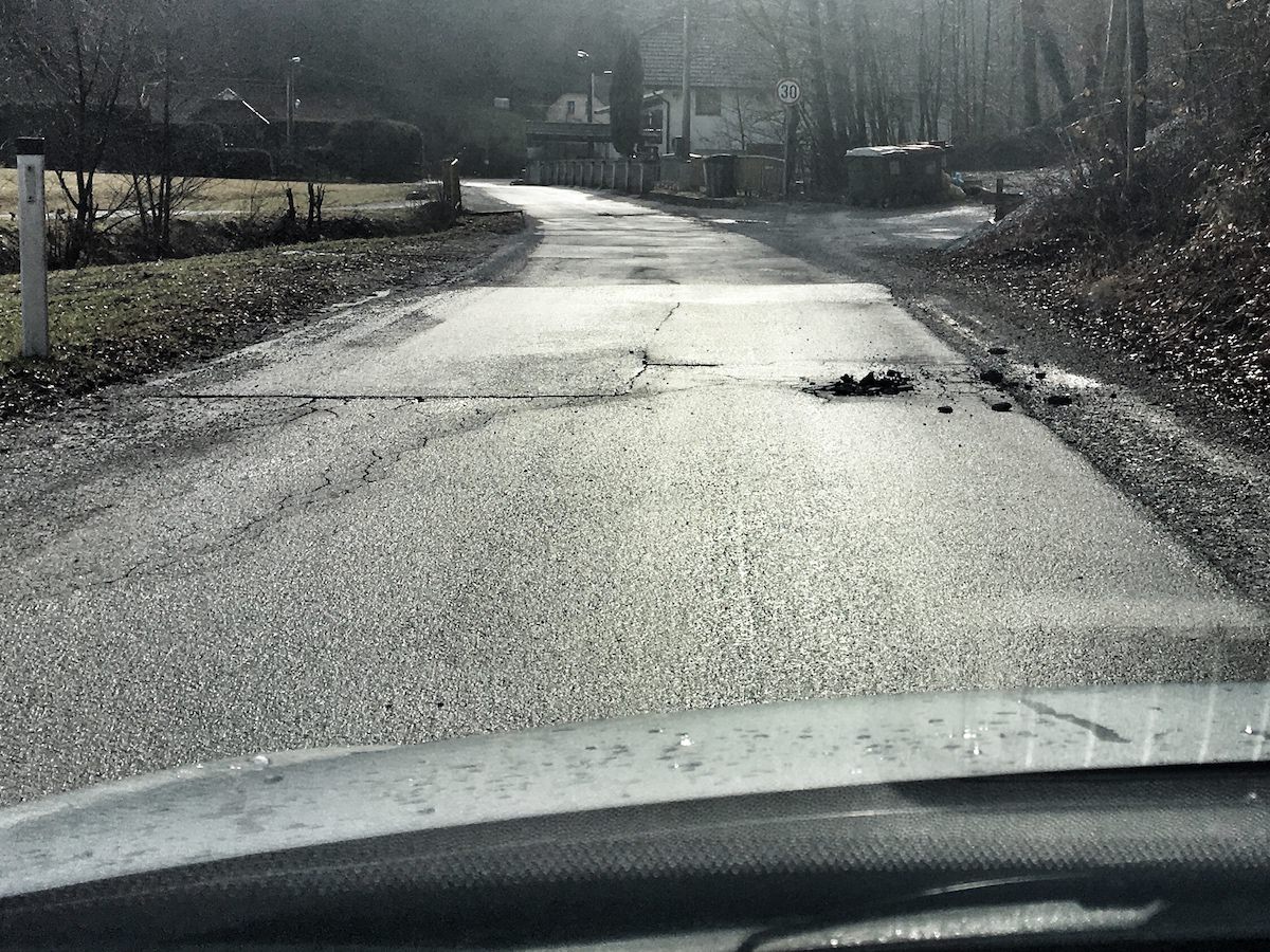 Zavedam se, da je kriza. Da ni denarja za vzdrževanje. In da so nizke temperateu naredile precej “sranja” na naših cestah oz. še precej več škode, kot jo je bilo do sedaj. Vožnja po regionalkah je vse prej kot prijetna. Občutek, da se vozim po “razfukanem” minskem polju je vse bolj prisoten, kot je tudi prisoten občutek, da se teh cest ne bo dalo nikoli več popraviti, saj so že sedaj sestavljene iz zaplat asfalta – kar je bil običaj, da se počne vsako pomlad.