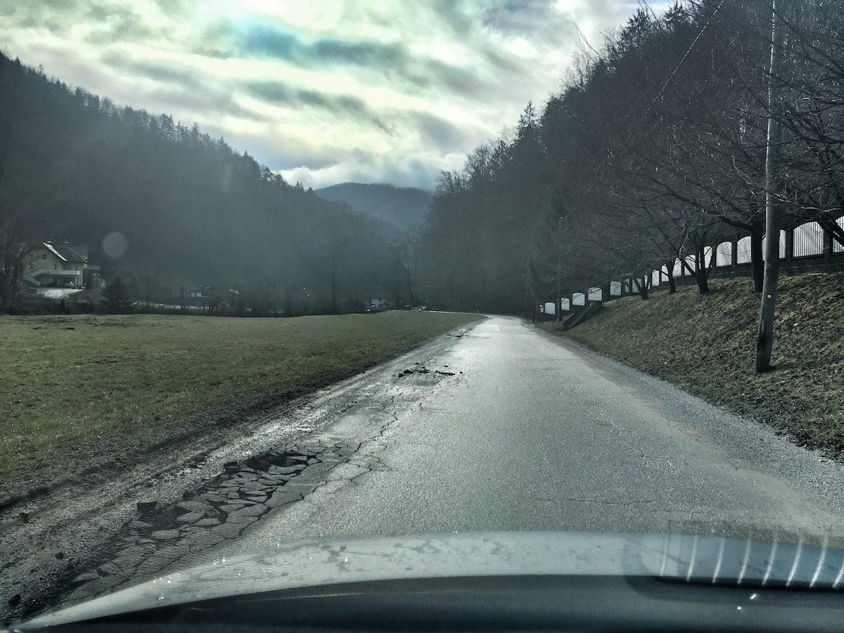 Zavedam se, da je kriza. Da ni denarja za vzdrževanje. In da so nizke temperateu naredile precej “sranja” na naših cestah oz. še precej več škode, kot jo je bilo do sedaj. Vožnja po regionalkah je vse prej kot prijetna. Občutek, da se vozim po “razfukanem” minskem polju je vse bolj prisoten, kot je tudi prisoten občutek, da se teh cest ne bo dalo nikoli več popraviti, saj so že sedaj sestavljene iz zaplat asfalta – kar je bil običaj, da se počne vsako pomlad.