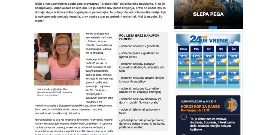 Smešno in žalostno je, ko urednica Mateja Klavs na 24ur.com objavi članek z naslovom – Pol leta brez (nepotrebnih) nakupov (vir). Članek je prekopiran in nikjer ne vidim originalnega vira, ampak to ni pomembno, kot je pomembno kaj bi urednica dala “na stran” – med drugim priporoča tudi – nobenih obiskov plačljivih koncertov ali drugih prireditev, niti kina. Jebeš kulturo, važno je, da je denar za kavico, kajne?