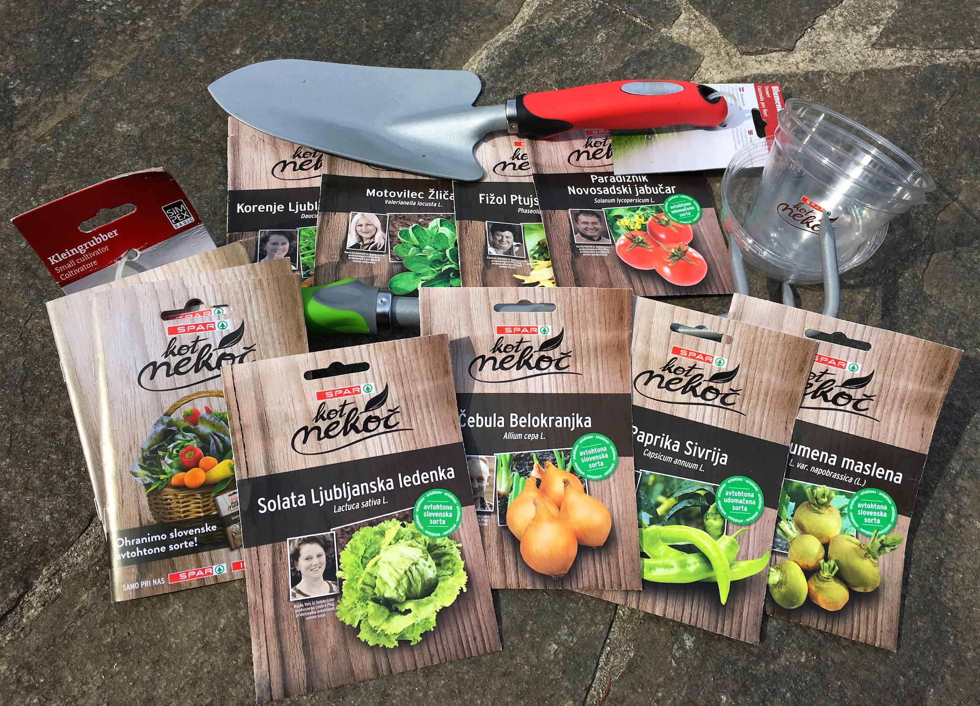 Sobotno jutro. Obisk poštarja in paket. Darile! Spar mi je poslal semena avtohtonih slovenskih vrst vrtnin – Kot nekoč. Projekt je plod sodelovanja Spara in Semenarne Ljubljana, kjer že desetletja vzdržujejo banko tradicionalnih