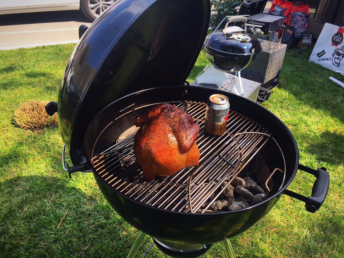 Vzemi “piksno” piva, jo odprite in vstavitev v njegovo sredino, da bo piščanc stal pokonci. To postavite na žar in piščanca tako pecite – če dodate še kakšen poseben les, za dimljenje, boste dobili posebno barvo piščanca, prav tako pa tudi okus in mehkobo. Pivo poskrbi, da se meso zmehča, dim mu da vonj in barvo in kot sem opazoval obraze – so bili vsi popolnoma navdušeni nad piščancem.