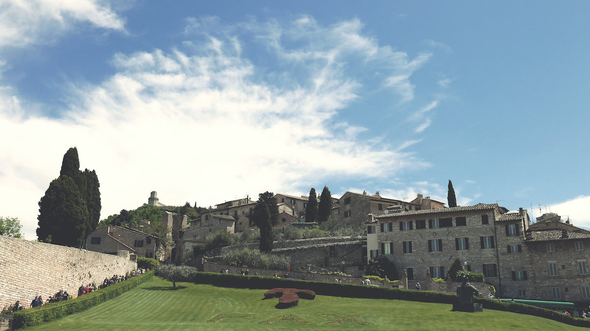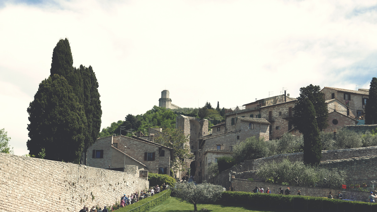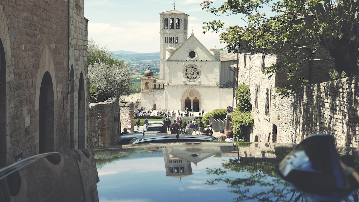 Mesto Assisi in bazilika svetega Frančiška sta vidni od daleč. Kljub temu, da nisem ljubitelj cerkva, kamoli krščanstva, pa me je impresivno mesto pritegnilo in niti najmanj nisem razmišljal, ko sem se peljal proti parkirišču. Trume vernikov in turistov so romale do Assisija in jaz sem se jim pridružil.