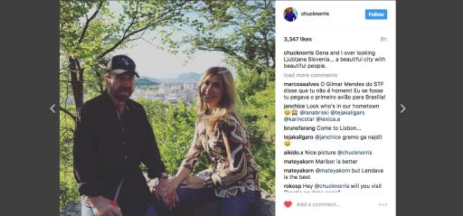 No, dejansko je bil pravi Chuck Norris v Ljubljani in jaz sem presenečen, da ga ni pogostil kralj Instagrama – Borut Pahor! Mogoče pa danes sledi sprehod po rdeči preprogi z njim in ovekovečenje za Instagram..