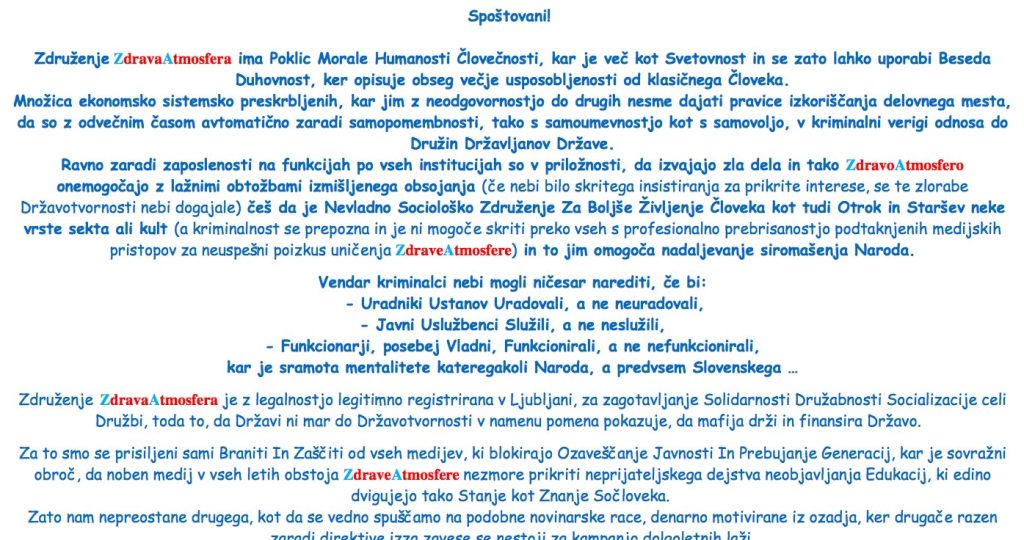 Zdrava Atmosfera, “kult”, katerega članica je finančna ministrica Mateja Vraničar Erman, ki jo je ustanovil in vodi Dragutin Barušić nadaljuje s svojimi lažmi, podtikanji in nebulozami. Očitno jim gre v nos, da nekdo piše o njih in potem poskušajo s svojim nagovorom različnim medijev, vladi in ostalim predstaviti svoje bistroneumne zaključke.