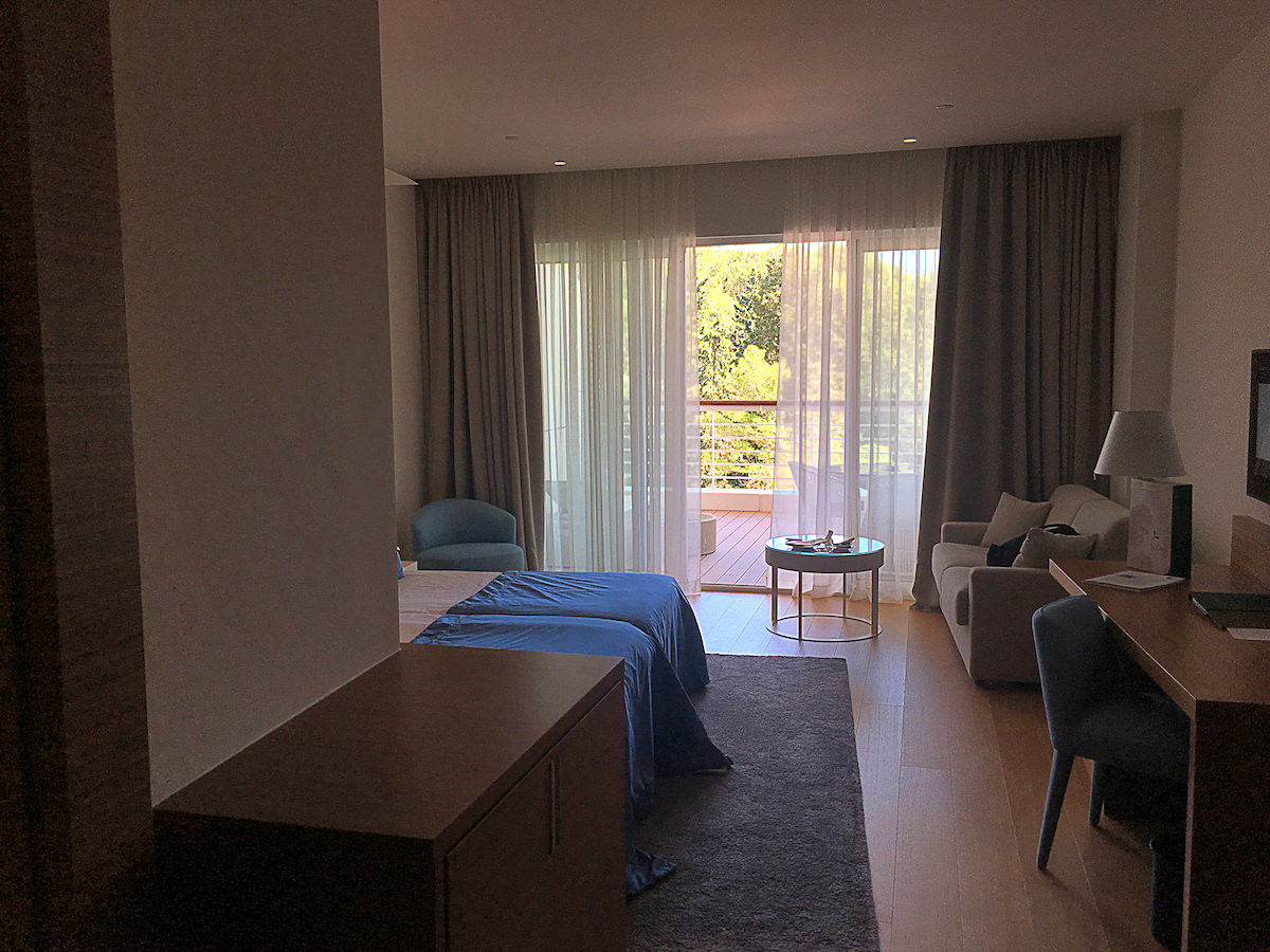 Hotel Bellevue se ponaša s petimi zvezdicami. Leži v zalivu Čikat in kljub temu, da sem spal že v veliko hotelih, me je le ta presenetil – v vseh smislih. Za to investicijo stoji ruski kapital, vendar je hotel zgrajen in urejen estetsko – ni kičast, kot bi si lahko predstavljal, vendar pa je vsak detajl dovršen.
