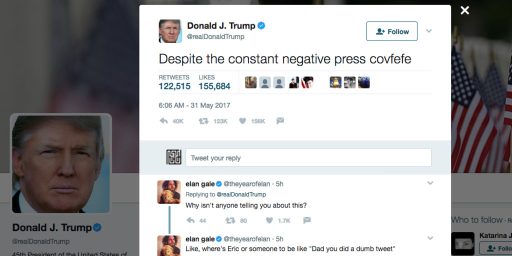 Vendar. To je Amerika. Ameriški demokratski kongresnik Mike Quigley je v ponedeljek predlagal sprejem posebnega zakona za ohranitev predsednikovih tvitov kot njegovih uradnih izjav, ki jih ne bi bilo mogoče izbrisati. Kratica posebnega zakona pa je “covfefe” (vir).