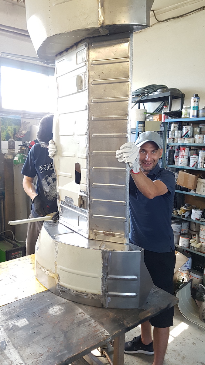 Tadeja sem poznal že iz Itak Ven projekta, ko sem prišel v delavnico in sem se navduševal nad predelavo starega T2 kombija. Tokrat je bila zgodba malce drugačna, saj bodo moje roke pomagale pri predelavi in posledično bodo pustile pečat na Beer Bulliju. Na vrsti je bilo varjenje in pa punktiranje. Če bi vedel vnaprej, bi vsaj poguglal stvari in posledično bi mi bilo bolj jasno, kaj in kako je treba delati.