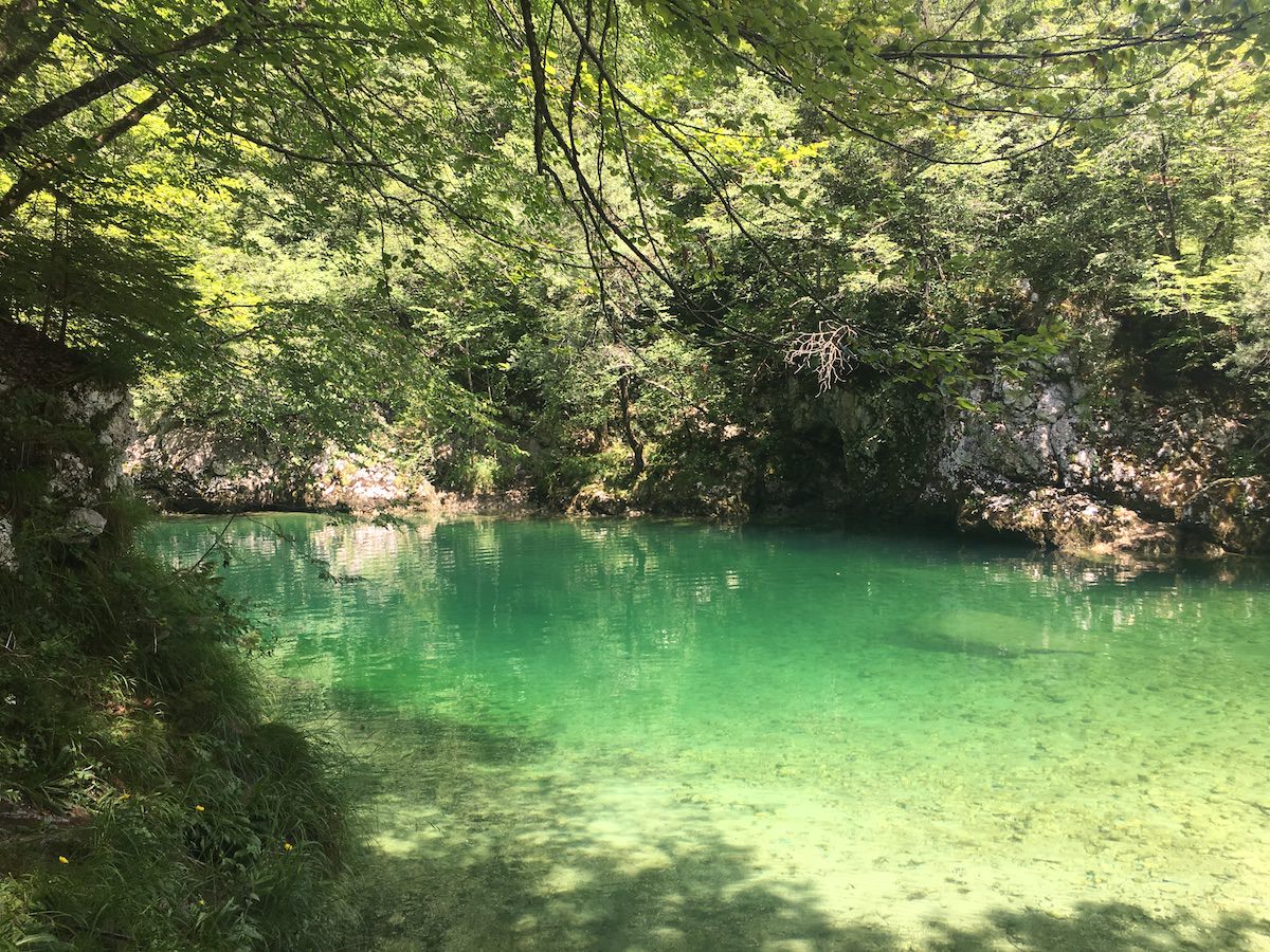 Visoka skala, globok tolmun in Sava, ki ima manj kot 12 stopinj. Kljub bližini Bohinjskega jezera je bilo samo par obiskovalcev – predvsem skupina “mulčkov”, ki so najbolj uživali, ko sem jim dal GoPro kamero in so se lahko snemali med skakanjem. Višina skale je okoli 6 metrov in skok na glavo s kamero je bil kar prijeten. Še bolj prijetna pa je bila voda, ki me je zelo hitro ohladila. Čista voda je bila kriva, da sem skočil še parkrat in vsakič znova užival.