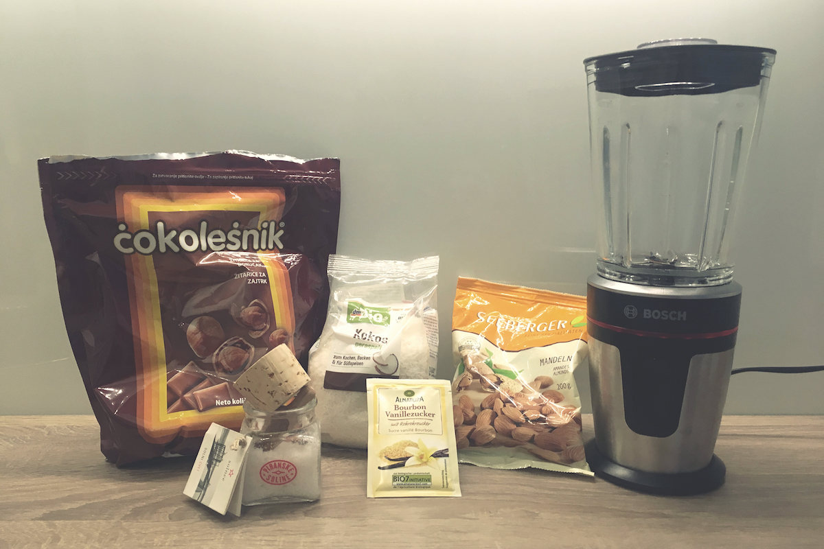 In to je praktično to, kar potrebujete. Če želite lahko mandlje prejšnjo noč namočite (jaz jih seveda nisem) in potem vse skupaj dobro “zmešate” v mešalniku (blenderju). Namesto mandljev lahko uporabite indijske oreščke in namesto vanilije dodate cimet.