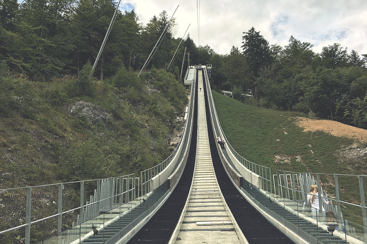 Sem se pa zato včeraj odpravil v Planico in se povzpel na velikanko. Na srečo si nisem meril srčnega pulza, ker bi bil presenečen, da ima človek lahko tako visok pulz. Glede na to, da imam strah pred višino je bil pogled v dolino precej “spooky”, ampak sem preživel in uspel priti do vrha skakalnice – sicer v trikratniku časa rekorderja iz Turčije, predvsem pa sem vmes snemal vse skupaj.