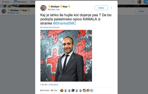 Spoštovani. Ni problem samo Boštjan Voje. problem so tudi njegovi sledilci in tisti, ki všečkajo njegove primitivne objave. Eden pogostejših ljubiteljev njegovih objav je denimo tudi novinar Demokracije Gašper Blažič, ki včasih tudi sam komentira Vojetove objave, največkrat na podobno primitivnem nivoju. O tem bi se dalo naredit poseben članek, ker je ta tip res svojevrsten fenomen: dela se žrtev nasilja (češ nataknili ga bodo na kol), obenem pa na FB in Twitterju razkazuje svojo nizkotnost, njegov novi šef Jože Biščak pa se ukvarja s pisanjem lažnih novic, kako vojak SV v vojašnici Moste časti Alaha.